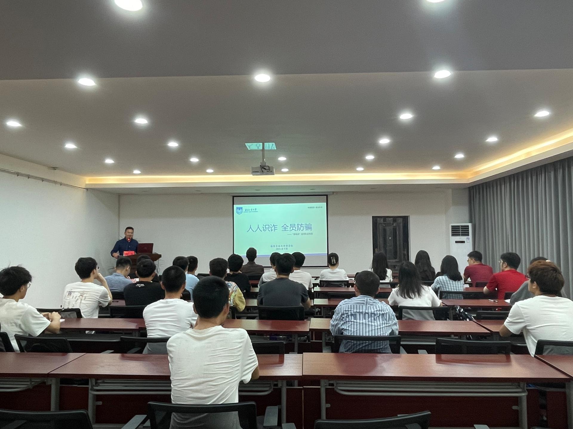 葛老师从电信网络诈骗的定义、江北新区电信网络诈骗案件发案态势、几种常见诈骗类型的特征、电信网络诈骗防范建议四个方面展开讲解,用一个个鲜活的案例揭示了网络兼职刷单、冒充客服和熟人、网络购物、校园贷等常见诈骗手段。葛老师告诫同学们,要时刻保持警惕,保护好个人信息,不轻信陌生人,不下载不明软件,不随便转帐,对有疑虑的事件多询问确认,加强与老师的沟通,提高防诈反诈意识。葛老师还向同学们推广了反诈神器“金钟罩”APP,并强调校园遇到任何安全问题要及时拨打校园热线58139110或58139119,校园安全部随时呵护着大家的安全。