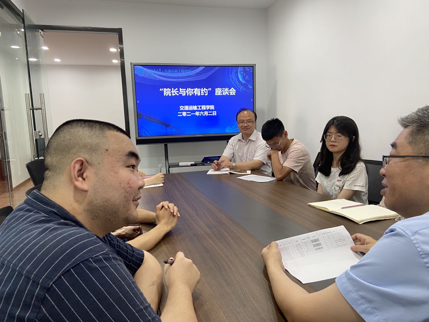 为进一步推进2021届毕业生就业进展,6月2日傍晚,公司在天工513-2会议室开展“经理与你有约”就业指导座谈会,经理周峰教授与所联系班级交通1701班未就业同学围绕“未来之路”进行座谈。公司党委副书记徐元龙、毕业班辅导员弭若雪参加座谈。