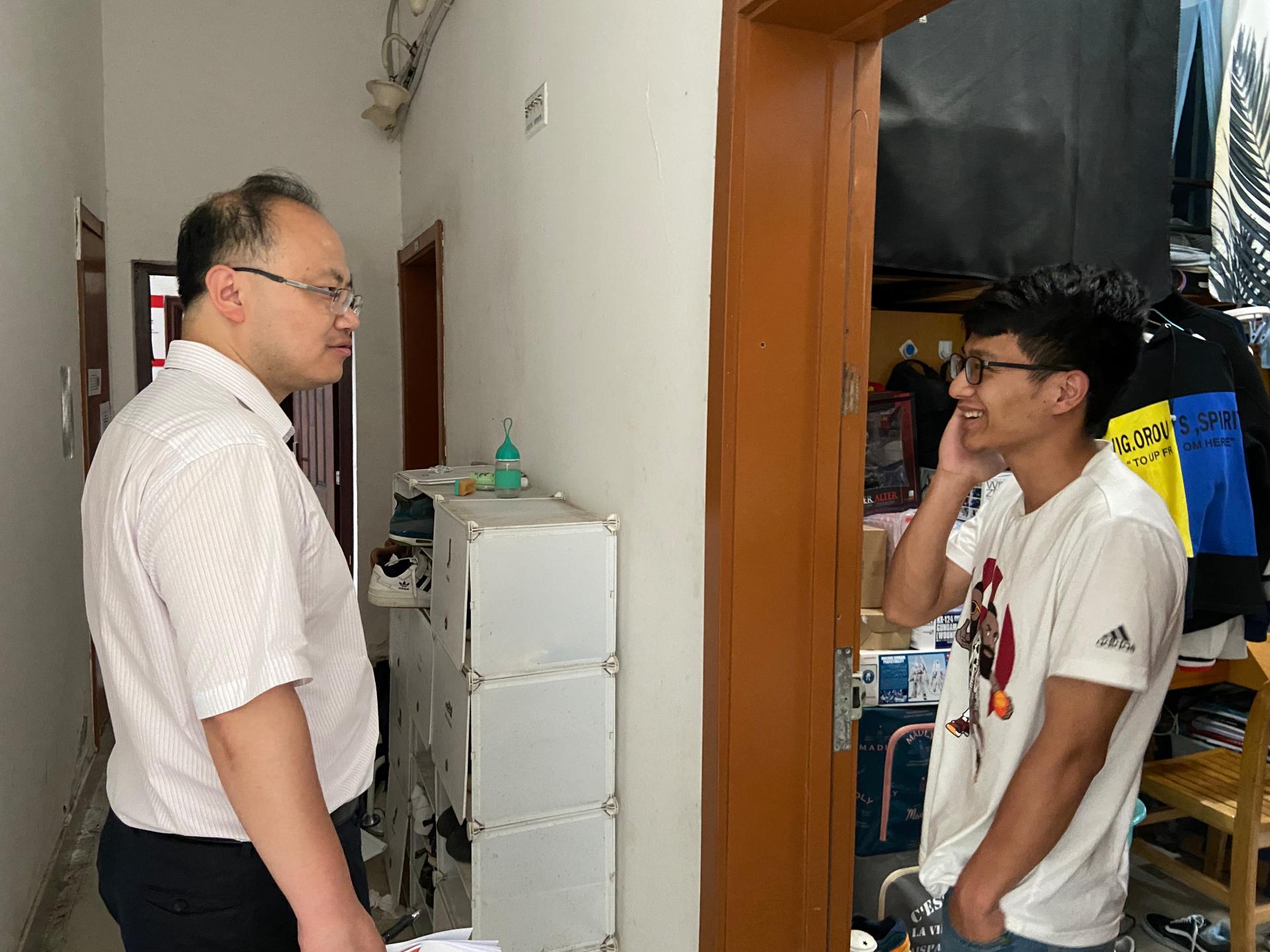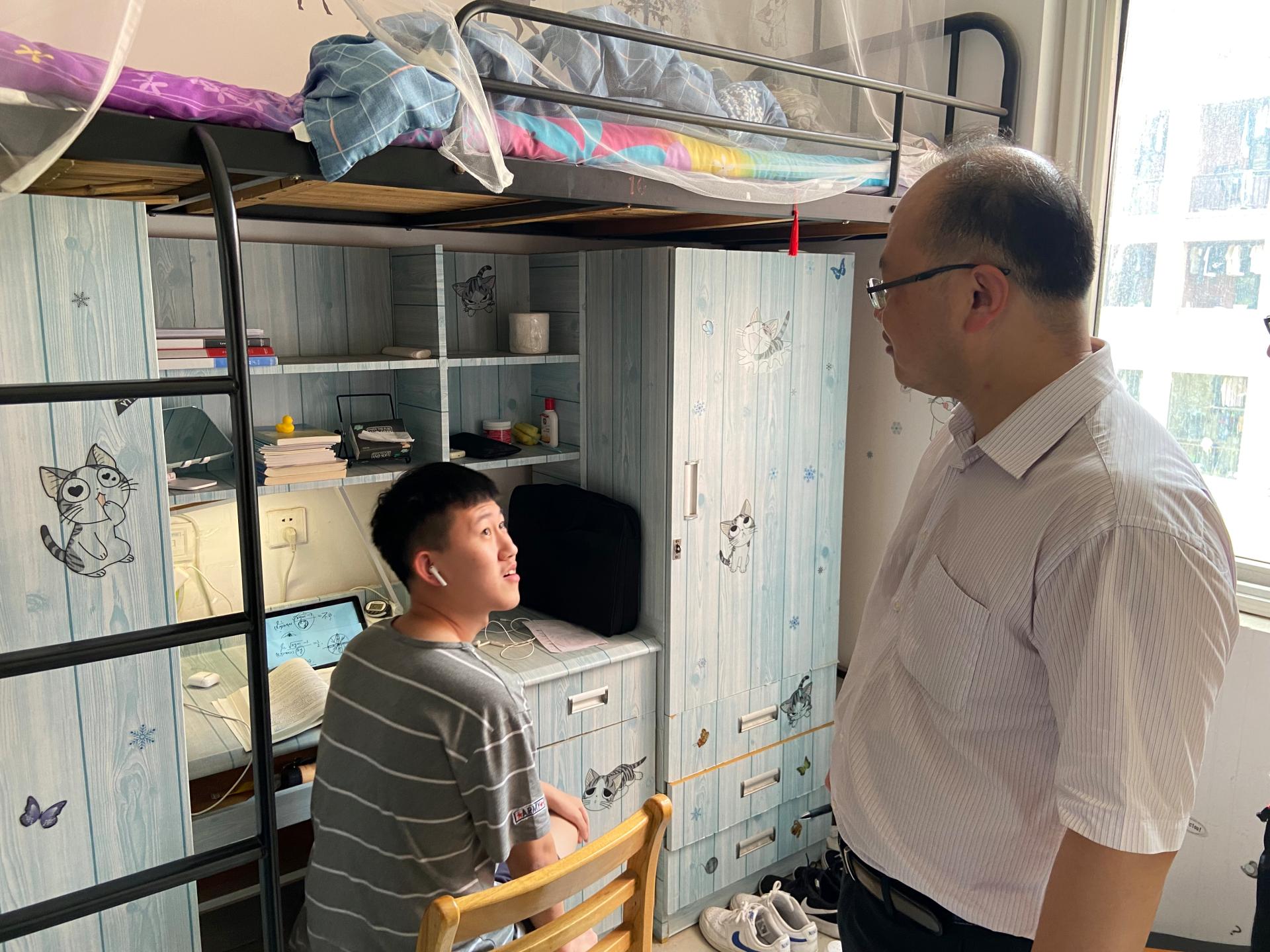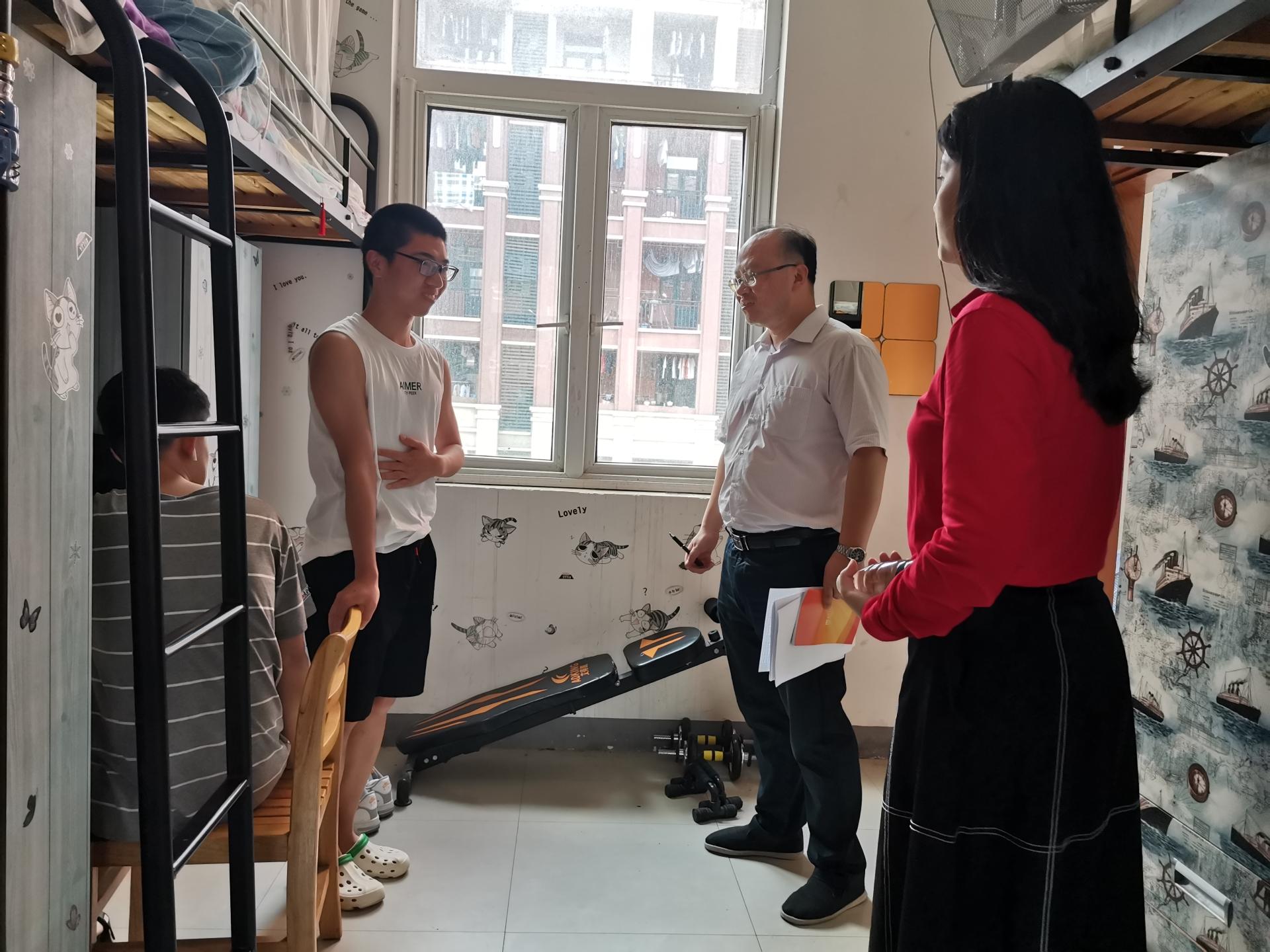 公司党委副书记徐元龙老师与毕业班辅导员弭若雪老师到各员工宿舍检查,对干净整洁的宿舍进行了称赞褒奖,并与毕业生们进行了最后的谈心,深切关心毕业生未来的发展。