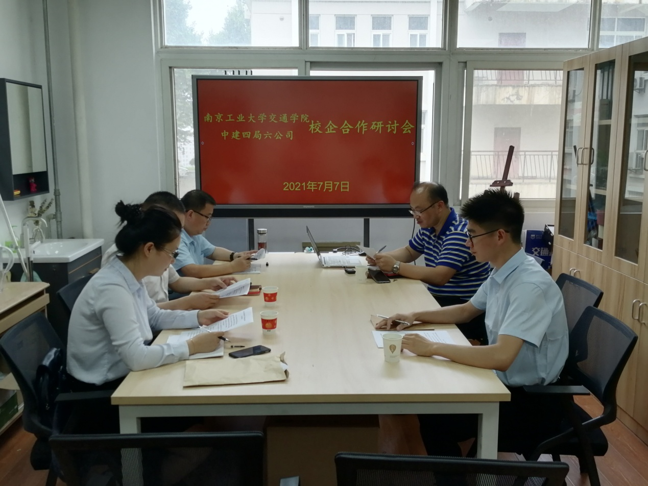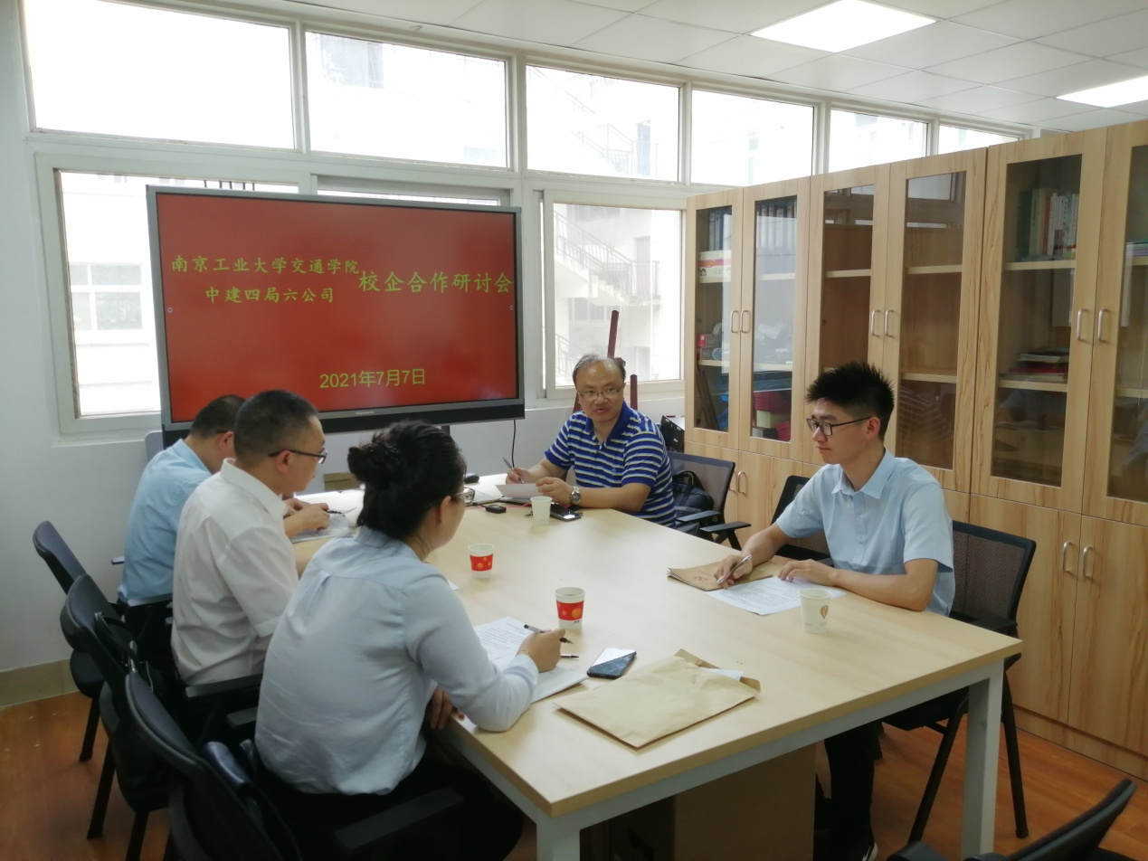 7月7日下午,太阳成集团122ccvip邀请中建四局第六建设公司人力资源部经理陆强、基础设施分公司总工王玉松、基础设施分公司人力经理段厚婷,于天工楼406会议室举办校企合作研讨会。公司党委副书记徐元龙、团委副书记袁志平参加活动。