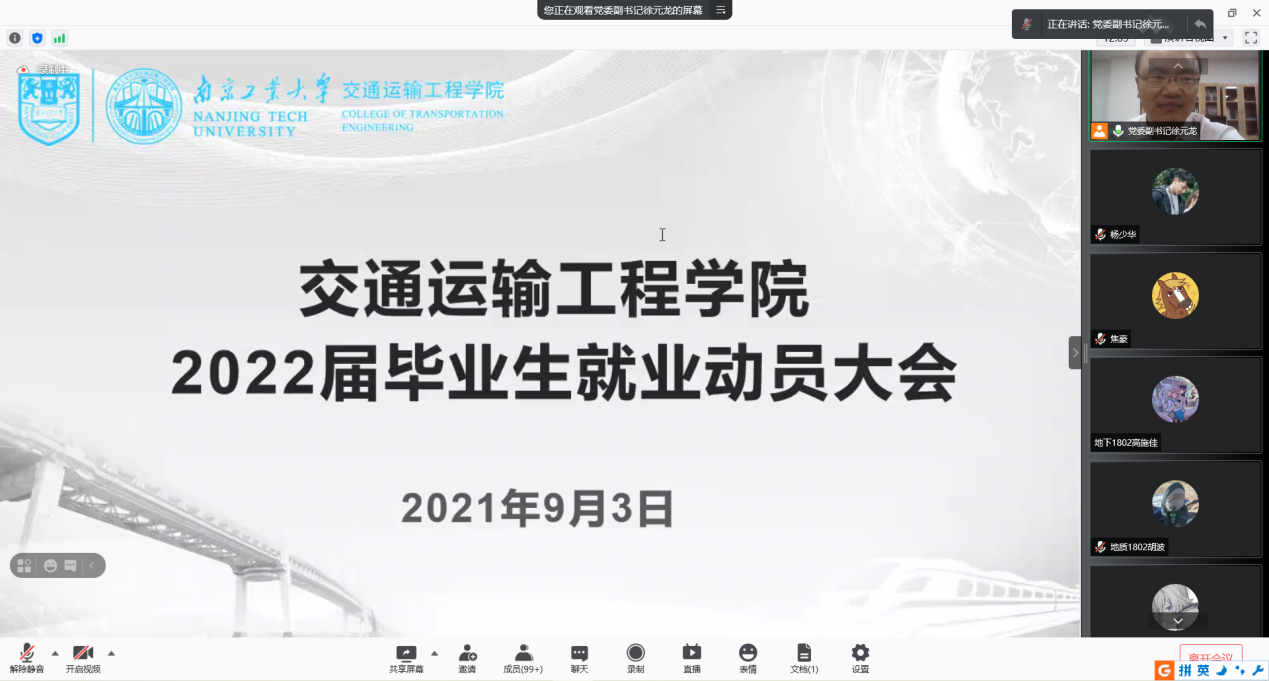 就业是最大的民生,为了让2022届毕业生明析当前就业形势,及时准确把握就业机会,9月3日晚,太阳成集团122ccvip于腾讯会议平台举行2022届毕业生就业动员大会。公司党委副书记徐元龙、2022届毕业班辅导员袁志平及全体毕业班员工参加会议。