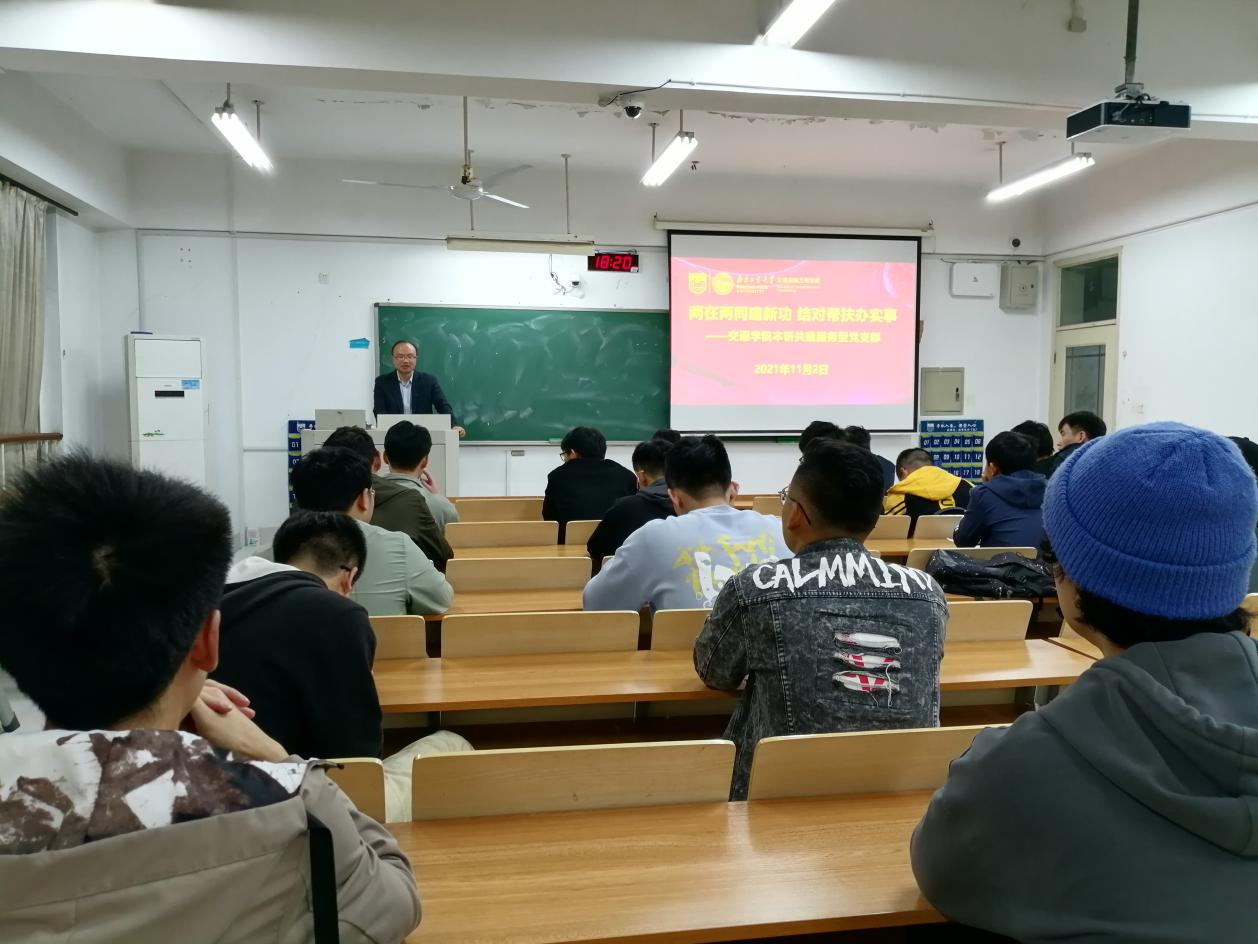 徐老师要求研究生党员以夯实党史学习教育成效为目标,认真践行“两在两同”做好结对帮扶,帮助学弟们提高英语学习成绩和英语四级通过率。他给同学们详细介绍了未通过四级对就业及考研的重要影响,列举实例警醒同学们四级的重要性。徐老师根据自己多年来的经验,分享了具体学习方法。第一,做好准备工作。定位自身水平,找出差距,针对性计划学习。第二,做好备考计划。从宏观计划与微观计划入手,详细规划学习进度。同时,他针对听力、阅读、作文等题型给出了详细的学习建议。互动环节,徐书记详细了解同学们的四级成绩、目前学习状况及薄弱环节,针对同学的问题做出解答,并预祝同学们在研究生学长的领航下顺利通过英语四级考试。