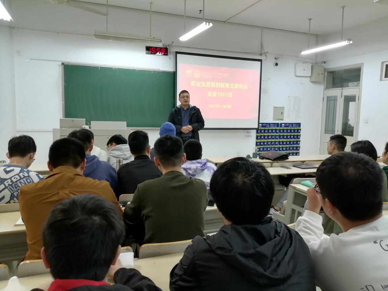 为引导2022届毕业生深入认知自我和当前就业形势,科学、合理制定职业目标,11月2日下午,公司地质1801班于仁智422教室举办职业生涯规划教育主题班会。导师班主任胡彦博、18级辅导员袁志平、班级全体同学参加活动。