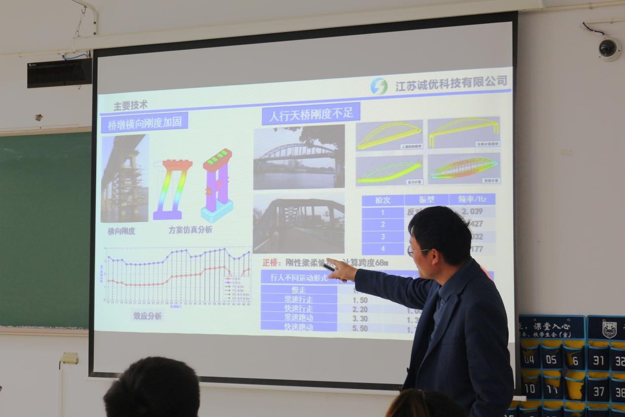 徐元龙副书记从毕业生规模、疫情影响等详细分析了2022届毕业生就业形势严峻性,并开展针对性就业指导,依次对春招、考研复试等方面进行解读,指出就业难问题,鼓励同学们不逃避就业、不害怕就业,建立自信,勇往直前,树立先就业再择业的就业观。经理助理李永义教授为阳春龙总工颁发企业导师聘书。王长琦总经理介绍了诚优科技公司业务范围、企业文化、团队展示等。阳春龙总工对特种车辆过桥专项技术展开精彩的解读。2019届员工李强经理就自身入职三年来经历分享自己如何从迷茫到建立职业使命感和责任感分享了自己的职业生涯感悟。