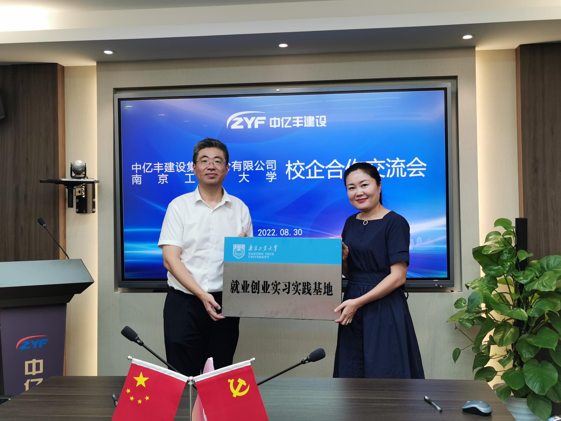 王丽萍总监在欢迎致辞中介绍了中亿丰建设集团情况、人才需求、毕业生招聘及员工培养发展计划,希望校企双方进一步加强人才培养和产学研合作。周峰经理介绍了公司发展历程、团队建设、团队队伍和对外合作交流情况,徐元龙副书记介绍了公司人才培养和近几年老员工就业情况,希望双方共同为提升人才培养质量和促进老员工充分就业提供有效资源,发挥三全育人优势,助力老员工充分高质量就业。校企双方签署了老员工实习实践合作协议,共同为“就业创业实习实践基地”揭牌。交流中,校企双方还就党建与人才培养双融双促等方面深入交流。