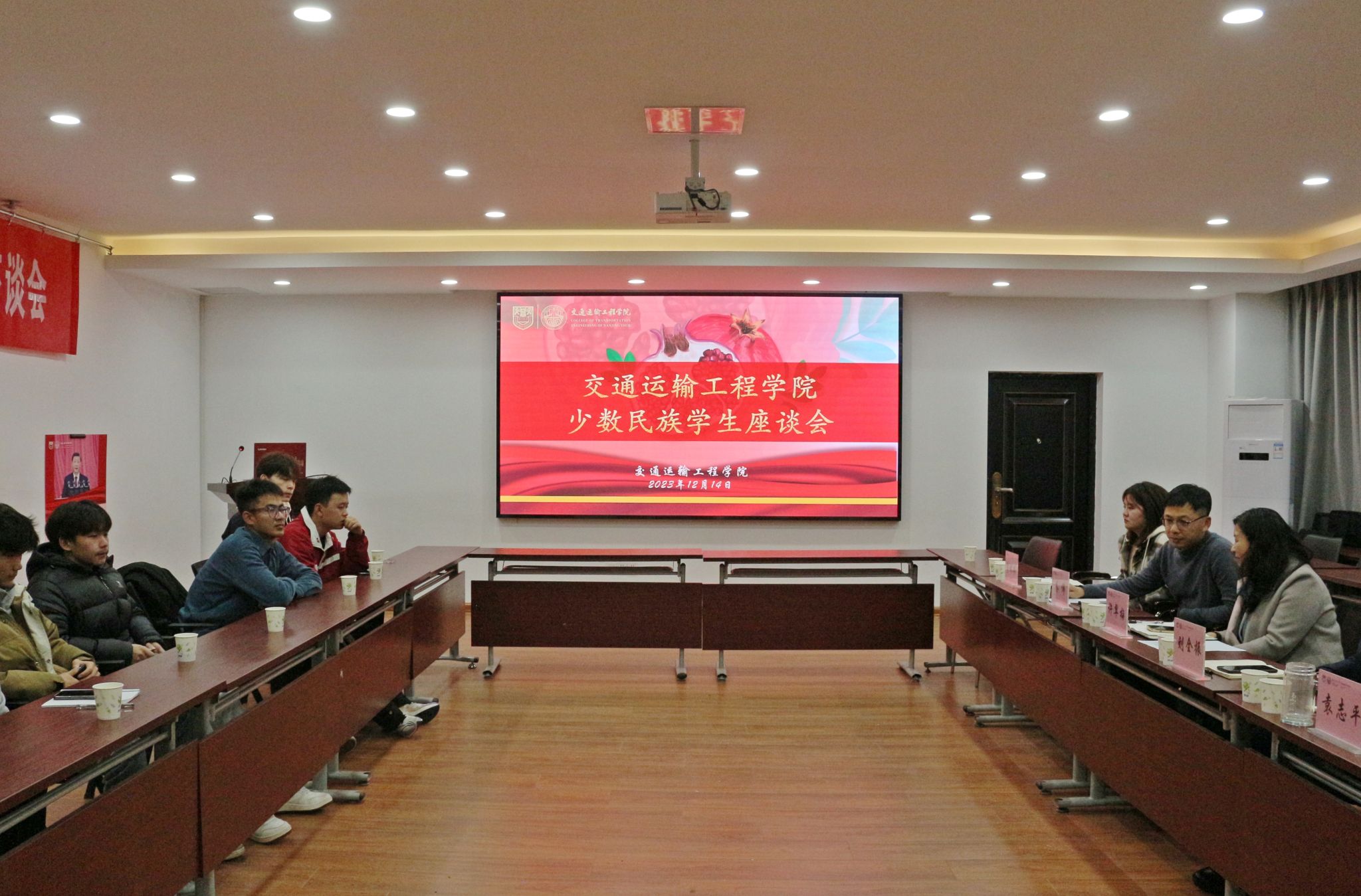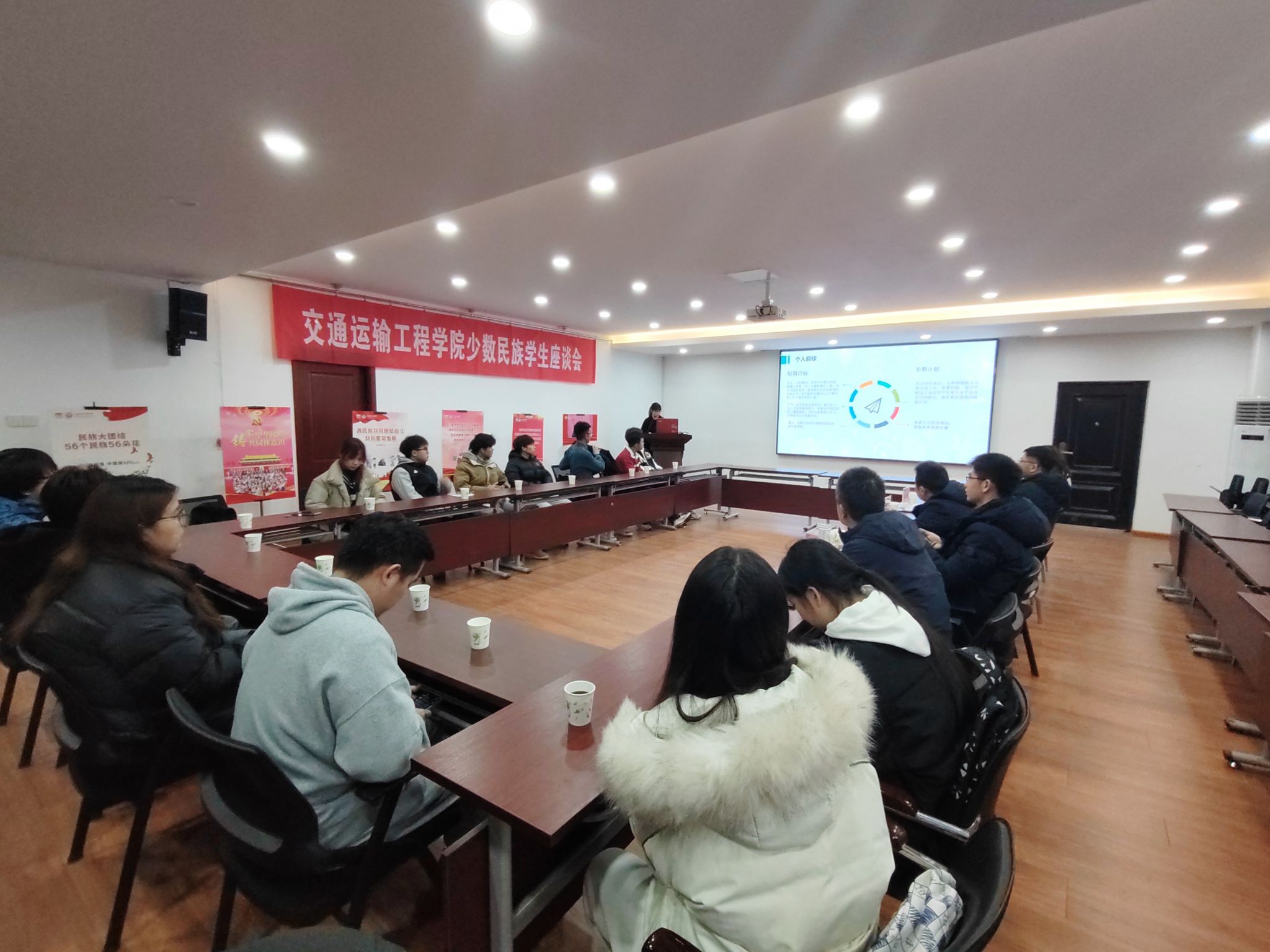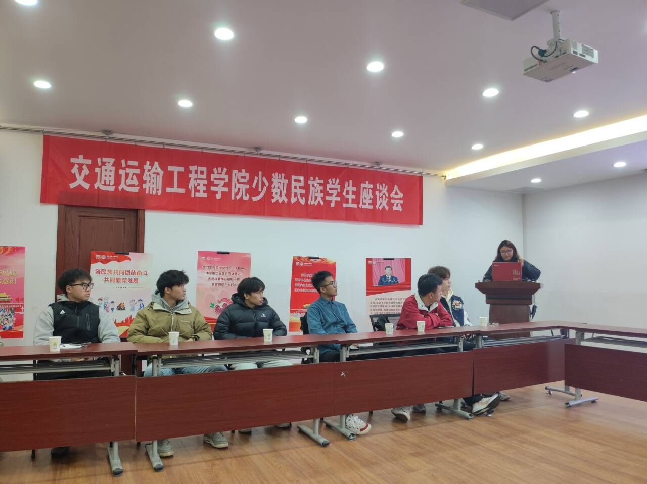 同学们依次展示了自己民族的历史、习俗、建筑、饮食等文化,分享了入学以来的学习生活经历及个人学业规划。老师们认真听取同学们遇到的困难与问题,有针对性地予以指导和帮助。刘全振副书记表达了对同学们不断成长的肯定和欣慰,鼓励大家明确目标,积极与公司老师沟通交流,从各方面更好地提升自己。许翠梅书记提出四点希望与要求:一是要铸牢中华民族共同体意识,时刻铭记民族团结。二是要尊重各民族文化,并积极传承自己民族的优秀文化。三是要敢于、善于融入大集体,争当民族团结的使者。四是要充分做好学业规划,掌握专业技能,投身交通强国建设。