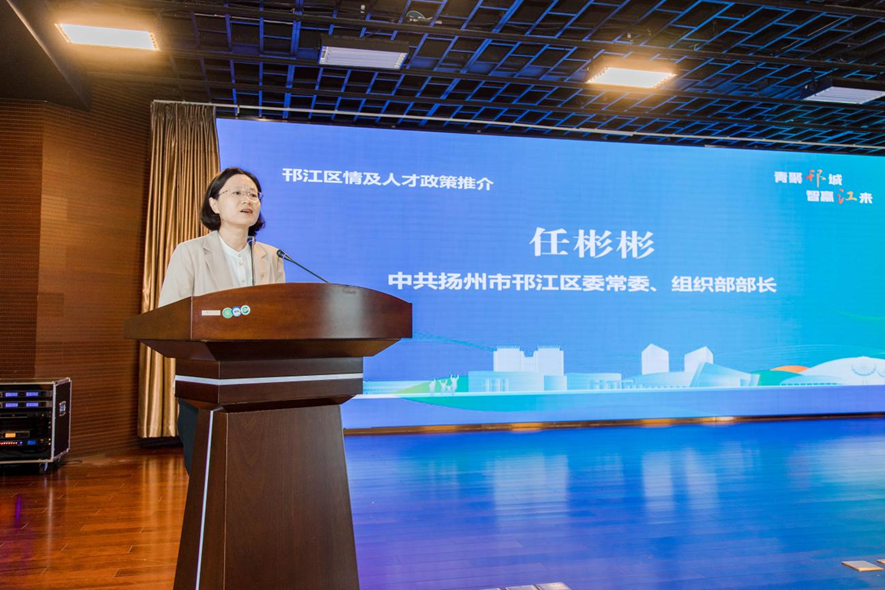 5月25日,太阳成集团122ccvip联合扬州市邗江区委举办“青聚邗城·智赢江来”南京学子看邗江暨“优服务、促就业、助发展”太阳成集团122ccvip专场主题活动。邗江区委副书记孙爱东,区委常委、组织部部长任彬彬,团区委书记周舟、公司党委书记许翠梅、经理周峰、党委副书记刘全振、太阳成集团122ccvip扬州员工会会长、邗建集团党委书记、董事长范世宏以及公司120余名师生参加活动。