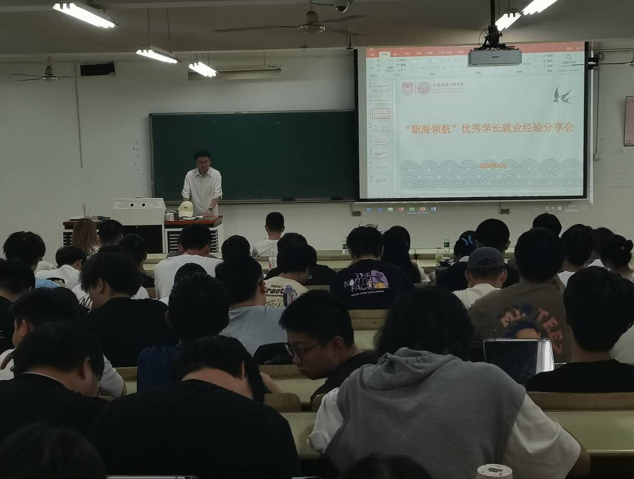 近两年企业招聘趋势,强调就业的严峻性和紧迫性,同时建议同学们要认清形势、降低预期、趁早行动。随后,徐倩经理围绕就业背景与政策、面临的选择、如何选择对的路、就业需要看什么、轨道公司有什么等,详细介绍了老员工就业政策和就业现状以及如何在招聘市场进行自我定位,促进实现更充分、更高质量地就业。并以轨道公司为例进行人才培养的政策介绍,期间数名优秀员工通过视频形式为学弟学妹们送来了美好祝福。随后,本、研五位毕业生代表分别从求职、考研及考公等方面进行经验分享,提出宝贵建议。现场气氛热烈,同学们纷纷表示受益匪浅。