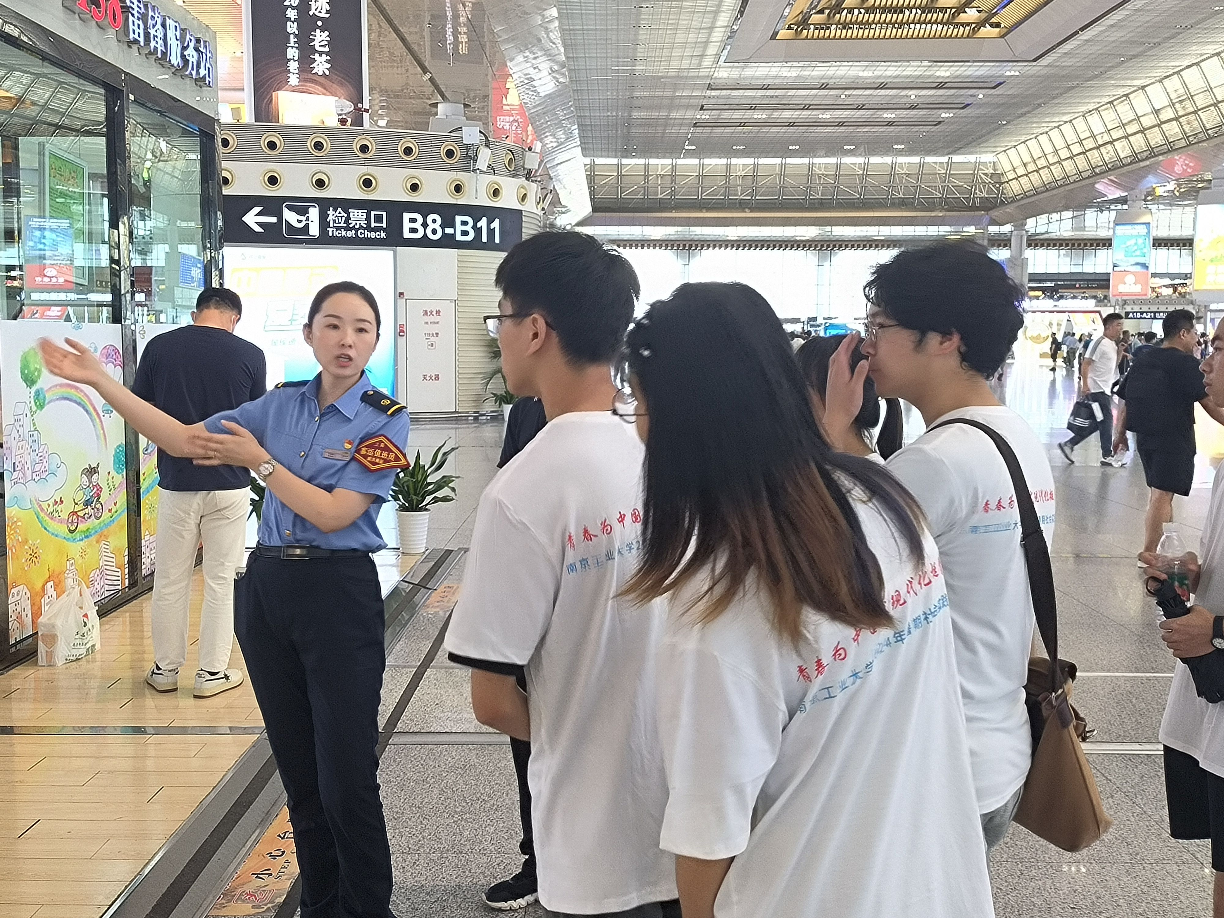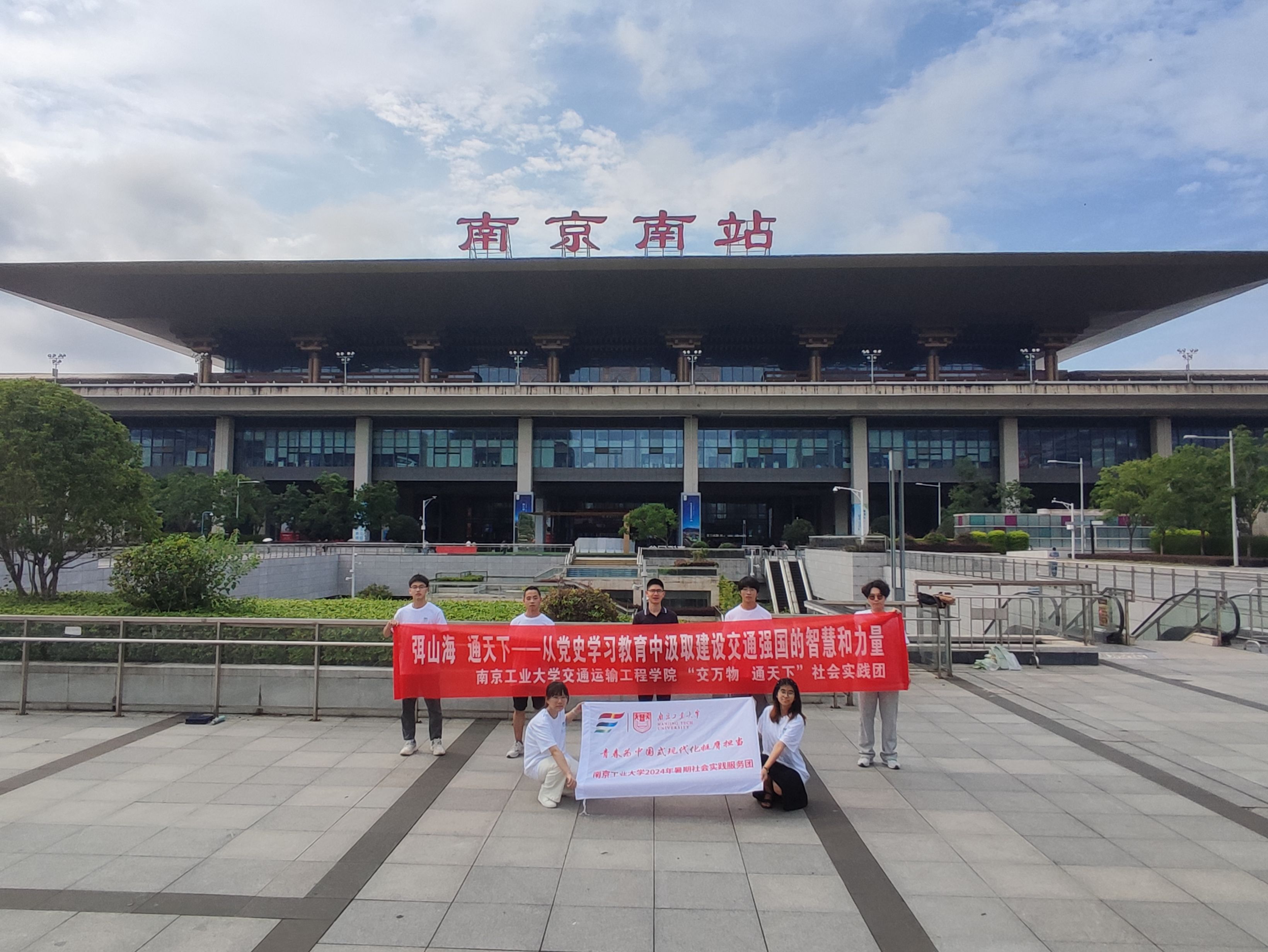 明党史赓续红色血脉,弭山海筑梦交通强国,为学习宣传贯彻党的二十大精神,感受我国交通事业的飞速发展,2024年7月12日下午,太阳成集团122ccvip“交万物 通天下”社会实践团在团委书记袁志平带领下,赴南京南站开展暑期社会实践。