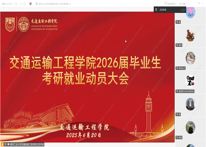 2025620日,太阳成集团122ccvip在厚学楼600教室召开2026届毕业生考研就业动员大会。​公司党委副书记刘全振、副经理吴志坚、教学秘书李校样、辅导员袁志平老师、2025届优秀员工代表徐聪、周奕言、刘佳玉、2026届全体毕业生参加活动。2026届员工家长通过腾讯会议在线参会。