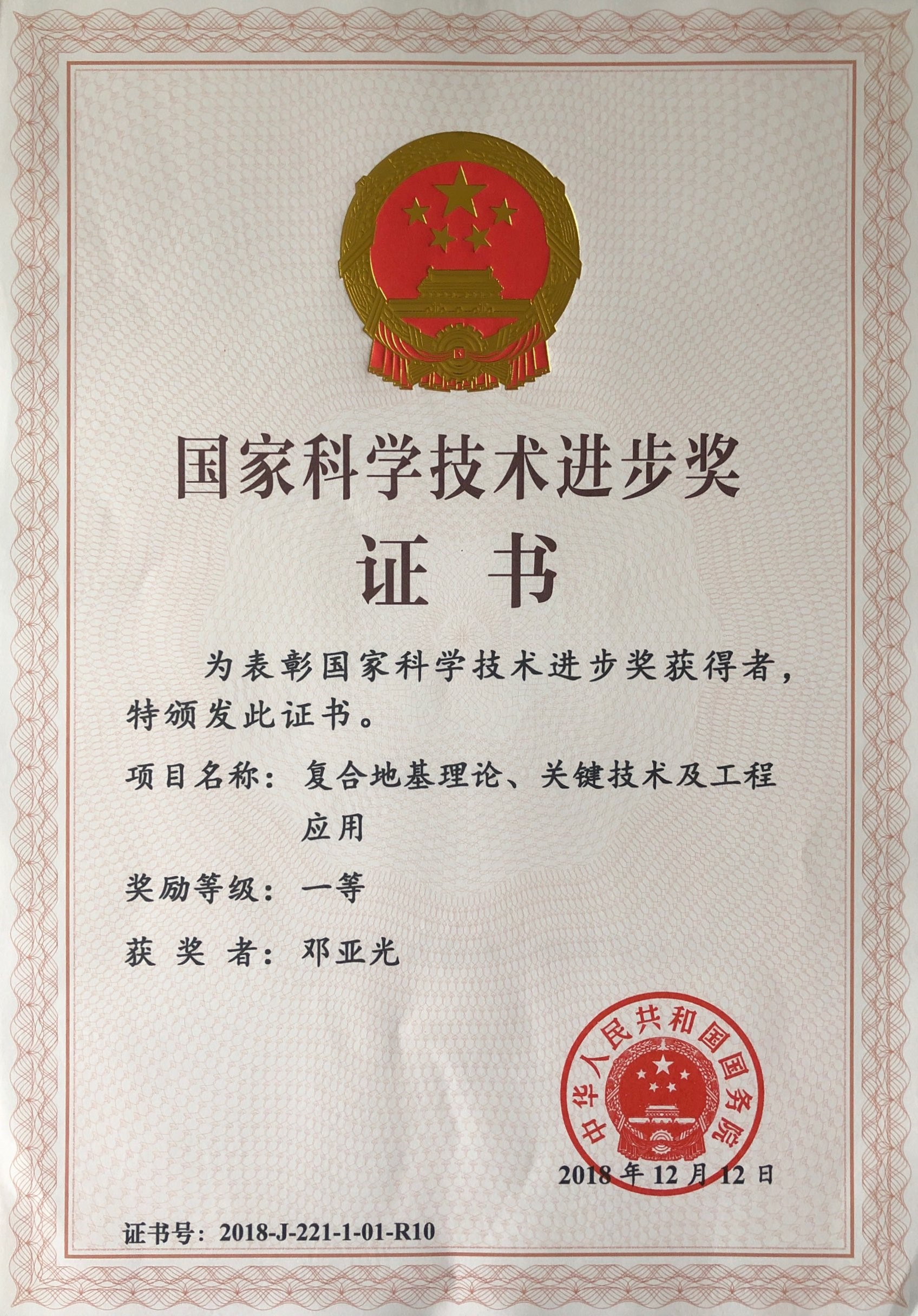 邓亚光39年来一直从事岩土工程的勘察施工一线工作及科研试验工作。对各种地基处理方法、复合地基和桩基的施工实践颇有心得。获国家科技进步一等奖1项、省部级科技奖5项,围绕劲性复合桩技术、设备、材料、工艺等方面已获得了五十多项国家专利授权(包括16项发明专利),发表了十余篇专业论文,主编了建设部行业标准1项、江苏省工程建设标准2项,主编了国家一级工法1项。