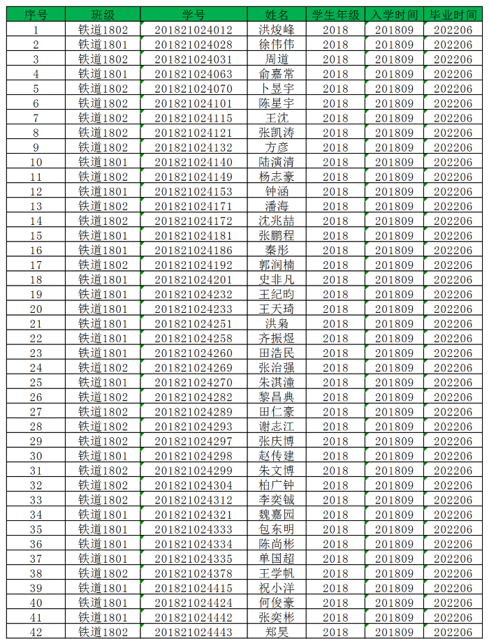 太阳成集团122ccvip2022届铁道工程专业毕业生名单