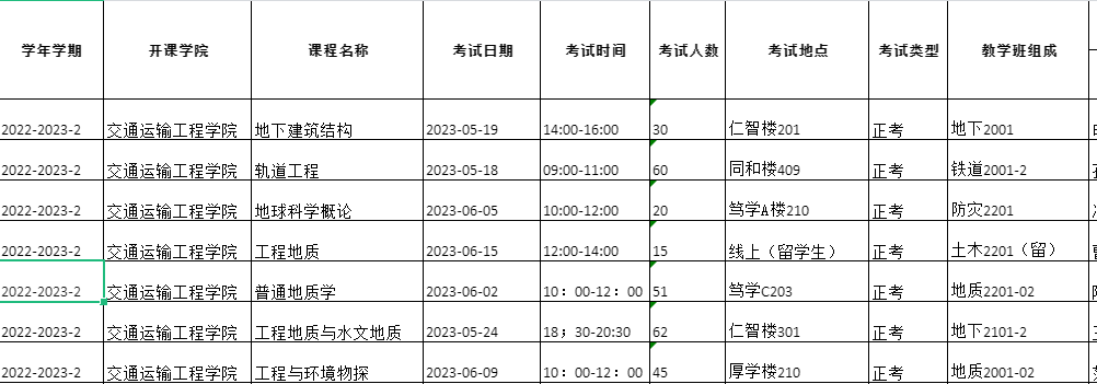 太阳成集团122ccvip2022-2023学年第二学期自排课程考试安排表①